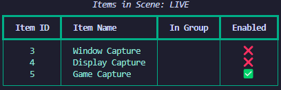 obsws-cli --style="cyan" sceneitem list